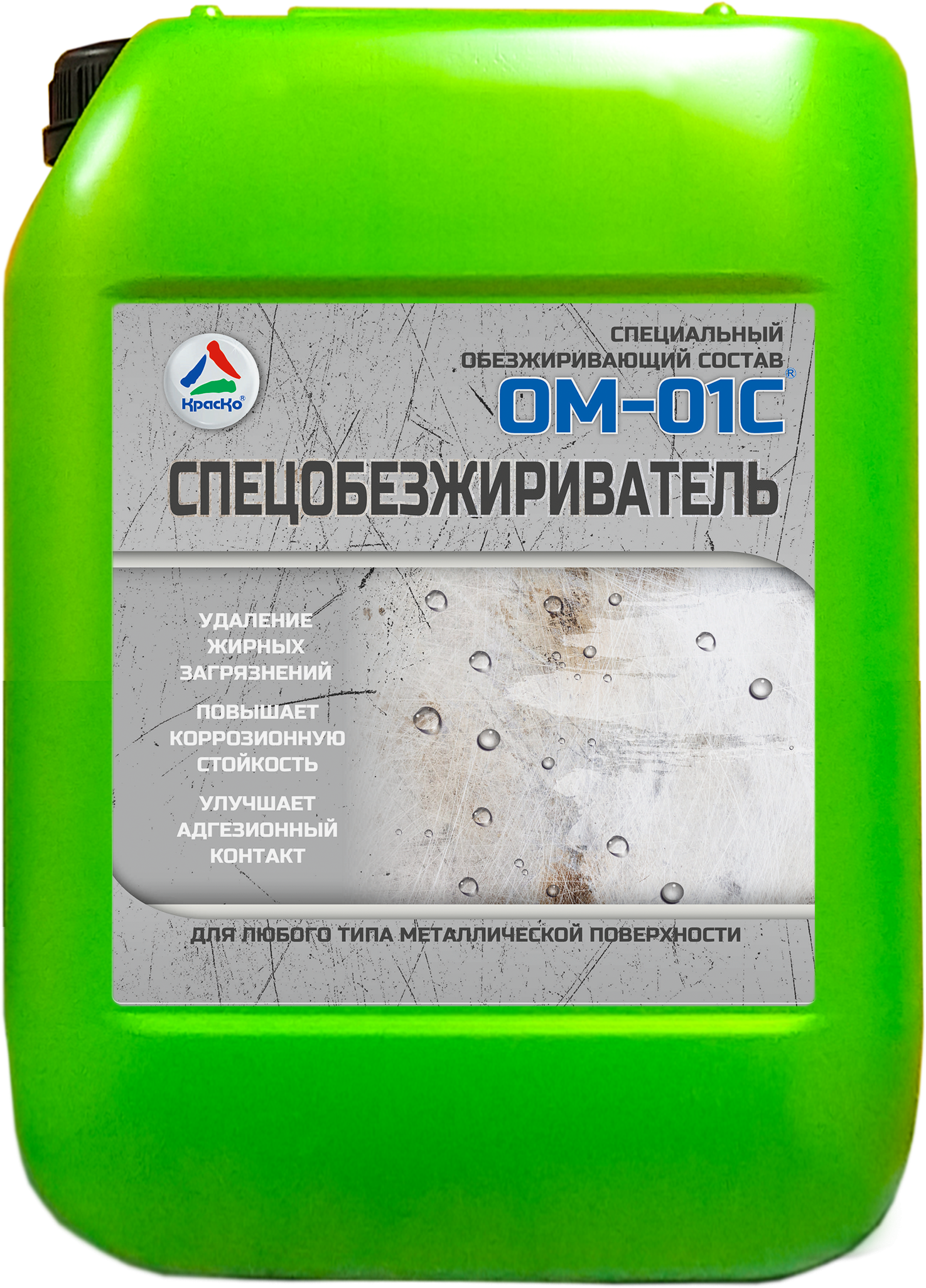 ОМ-01Суниверсальное средство, подходящее для любого типа металла. Используется для очистки конструкций и изделий из чёрного, цветного или оцинкованного металла. Удаляет прокатную смазку, жировые загрязнения.